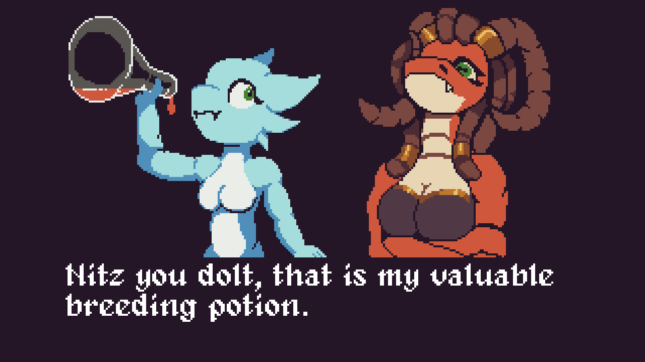 Nitz debt is a lewd action adventure platformer. Play as Nitz, a small yet incredibly horny Kobold doing her best to collect treasure to repay a debt owed to her mistress, the Dragon.